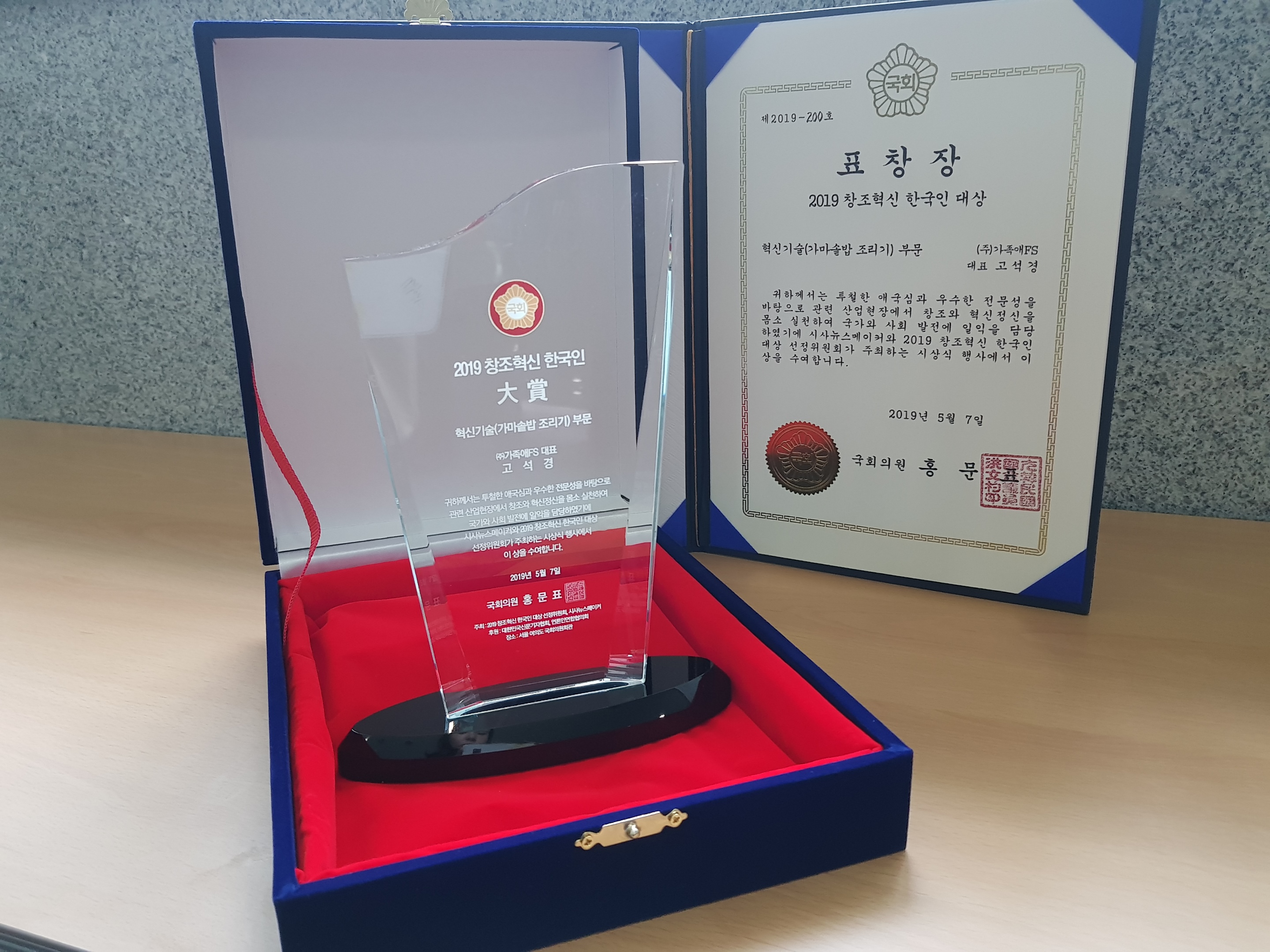 È«¹®Ç¥±¹È¸ÀÇ¿ø»ó¿¡ Çõ½Å±â¼ú °¡¸¶¼Ü¹ä Á¶¸®±â ºÎºÐ (ÁÖ)°¡Á·¾ÖFS °í¼®°æ ´ëÇ¥´Ô ¼ö»ó